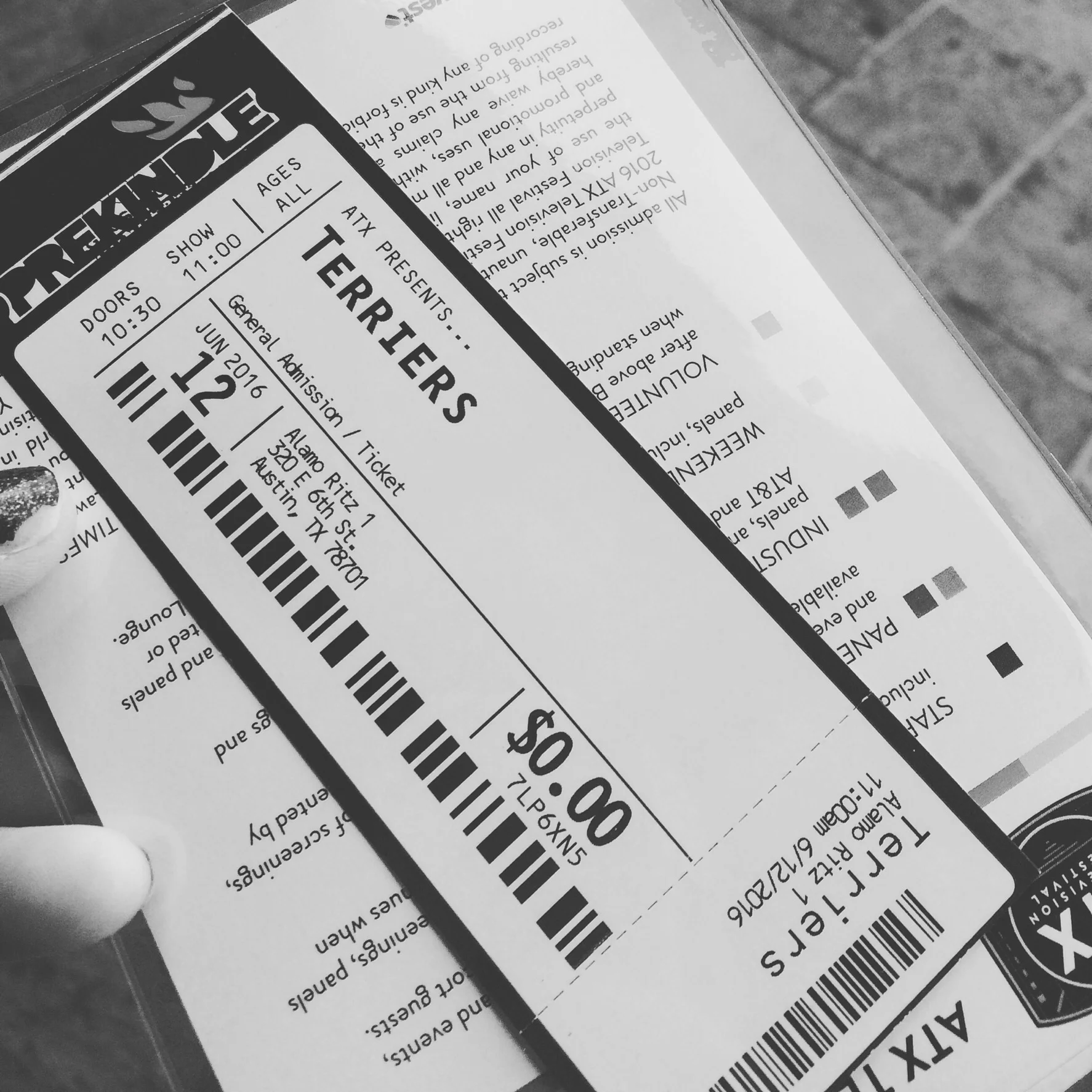 The last panel we went to was at Alamo Draft House on Sunday, for a reunion of the cast and creators of Terriers, which is another show that my husband and I watched together during its brief run (I'm pretty sure we were one of 20 viewers). The staff at the Draft House runs a tight ship and they'd put out signage and made the whole wait pretty easy--yay! They also created a special cocktail menu for the fest, which was super fun--and they gave me a massive bowl of free popcorn because Texas has some weird law about how you have to order food with alcohol. (Texas: Where you can legally walk around a public street brandishing a semi-automatic weapon, but you can't order a vodka and soda without a sandwich.)